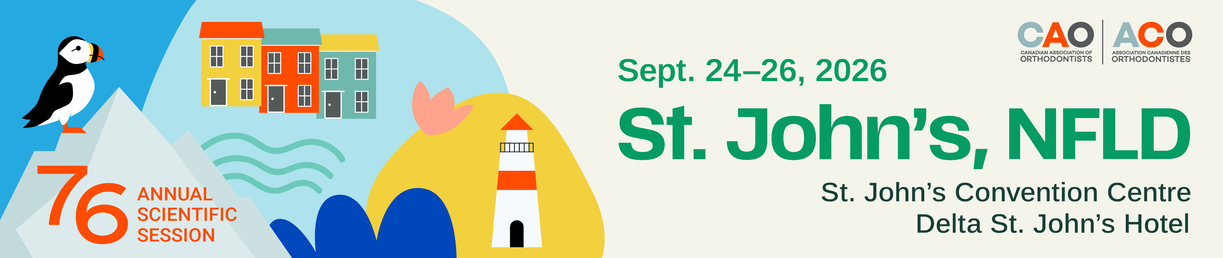 The Canadian Association of Orthodontists (CAO) is excited to be hosting our 76th Annual Scientific Session at the St. John's Convention Centre in St. John's, NL from September 24-26, 2026.